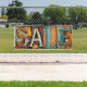 Este banner genial tiene el aspecto de letras metalizado rugosas/ricas que deletrean VENTA. Perfecto para un negocio no convencional, dinámico y urbano.