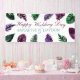 La pancarta del plum púrpura tropical, el rosa de las bayas silvestres y el día de la boda verde es una manera audaz de felicitar. Las hojas vibrantes de monstera, las hojas de palma y los helechos son coloridos para un boda tropical temático. Las hojas verdes de la isla y las violetas de ciruela son versátiles para una variedad de fiestas y recepciones de bodas con temática costera.