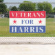 Manifestación detrás de Kamala Harris con la pancarta "Apoyo Patriótico", un poderoso símbolo para veteranos y partidarios que abogan por su presidencia en 2024.