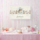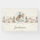 Pancarta de los niños de 1 cumpleaños con el tema occidental de los primeros años, con un paisaje desértico con cactus, vaqueros y caballos en un fondo azul claro. Este banner de primer cumpleaños de nuestro pequeño chico buckaroo es ideal para una fiesta occidental de primer cumpleaños.