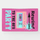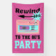 Rebobinado De vuelta a los años 80, este diseño presenta un estilo retro de los años 80 en rosa y azul con un texto que dice: "Rebobina de vuelta a los 80".