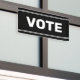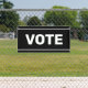 La palabra 'Vote' está en blanco en un cartel negro. Puede editar el texto si lo desea.
