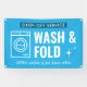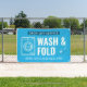 Create custom marketing outdoor signage for your laundromat and dry cleaning business using this modern blue and white laundry wash and fold service vinyl banner design. Featuring fully editable text and a washing machine graphic.