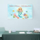 This watercolor mermaid clipart features a cute under-the-sea mermaid with flowing blonde hair, a turquoise tail, a purple seashell top, and surrounding coral, shells, and bubbles. Perfect for kids’ birthday invitations, party décor, and underwater-themed accessories.