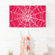 La telaraña de una araña se forma en un audaz vacío de color rosa.