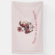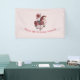 Birthday banner with a cute retro style carousel horse. Drawn in Pretty pink colors with fancy flowers.