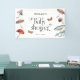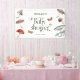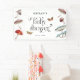 Banner de bienvenida rústico y caprichoso con ilustracion de champiñones y polillas. Diseño neutro de género para una ducha de otoño.