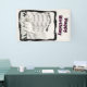 Este banner o fondo es blanco con un gato blanco guiñando el ojo caminando sobre las teclas del piano con una hoja de notas onduladas de papel en un blanco negro ondulado con marco punteado de color blanco. Personalizar el texto con la plantilla.