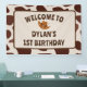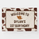 ¡Celebra el primer cumpleaños de tu pequeño con este cartel de temática occidental de vaquero! El personalizable de texto rústico marrón está en negrita y el diseño presenta a un lindo gorra de vaquero. Esta pancarta es perfecta para cualquier vaquero o vaquera. También es una gran manera de marcar el tono de un salvaje fiesta de temática occidental. ¡Ensillar y prepararse para un viaje salvaje!