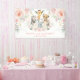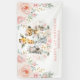 Este diseño de ensueño presenta el ilustracion de una colección de adorables animales de la jungla rodeados de hermosas flores rosas y delicadas acuarelas.