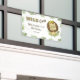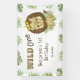 Acuarela dulce Adorable Cute pequeño rey de león bebé vestido con una corona dorada rodeada de vegetación fresca jungla tropical hojas de Monstera decorando el fondo. Primer cumpleaños, primer cumpleaños, bandera salvaje. ¡Un rey de la jungla se está volviendo! Personalízalo añadiendo tu propio texto personalizado!