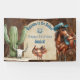 ¡Celebra el estilo rodeo con este banner vibrante y divertido! Con un mensaje de bienvenida '¡Bienvenidos al Rodeo!' y personalizado con '¡Feliz cumpleaños Jessica!', este cartel es perfecto para cualquier fiesta con temática de vaquero o vaquero. Con un cactus, cráneo, montura y caballo, trae el espíritu del Lejano Oeste a tu celebración.