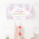 Pancarta de bienvenida con copos de nieve rosa y púrpura en invierno con ducha de novia. Incluye un precioso tipo de letra de guión en un diseño de texto falso en oro y purpurina. Tener una ducha nupcial de temática invernal es perfecto si va a ser alrededor de diciembre o invierno. Pancarta de ducha dulce y ondulada. Ilustracion digital de Kristine Lee. Para obtener más información, visite www.kristineleedesigns.com