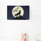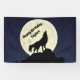 Crear suministros de fiesta personalizados que sean perfectos para los amantes de los animales y los fiestas maduros. Esta pancarta fiesta muestra el ilustracion de un lobo gritando en la luna contra un fondo azul del cielo nocturno de medianoche. Hay un punto para añadir tu propio mensaje personalizado.