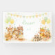 Celebrate your little one with this adorable woodland animals birthday banner featuring a sweet bear, bunny, and fox surrounded by floating confetti, colorful flag streamer, yellow and green balloons. Perfect for forest-themed gender neutral birthday parties, this banner adds a whimsy touch to your celebration.