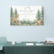 The text is centered along the banner in soft gray, using a graceful mix of handwritten script and classic serif fonts. The simple, clean layout pairs beautifully with the rustic woodland backdrop, creating a warm and inviting touch for your celebration.