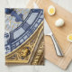 Una vista panorámica de la cara del reloj de la torre Elizabeth en Londres, impresa en una toalla de té de recuerdo.
