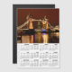 Magnetic Fridge Calendar 2026 featuring London with beautifully lit Tower Bridge at night. Famous London's landmark, iconic and popular spot, situated by the Tower of London (castle). Two towers of the bridge are also connected by walking high bridge on the top of the towers. This is to allow foot traffic to pass, when bridge opens for ships to pass under (in the old days, nowadays used for excellent view point). The main connecting bridge, that opens in the middle to let large ships, boats to pass. Unique night colored photo with lights reflecting in the river Thames. Original Photography/Art/Design by work4dream.