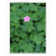 Foto de un solitario Geranium en un mar de hojas verdes.