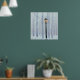 Obra de un solitario farol iluminado en un bosque nevado. En un tranquilo paisaje invernal, una farola solitaria arroja un cálido y acogedor resplandor sobre un telón de fondo de abedules cubiertos de nieve. Esta obra de arte capta un momento de tranquilidad de belleza, donde la suave luz atraviesa la serenidad de un día nevado. Trae un toque de tranquilidad y el sonido de la calma del invierno a tu casa. Perfecto para añadir un toque sereno a cualquier habitación. Esta ilustración se puede personalizar, imprimir y descargar.