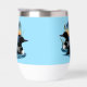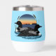Dos lomos en el lago con una puesta de sol y detrás de ellos en un fondo azul