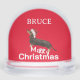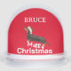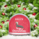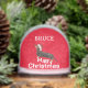 ¡Qué divertido! Un perro deseándoles a todos una Feliz Navidad sentándose y aplastando las palabras. Personalice con su nombre o elimine el nombre por completo. Un fondo rojo y un Sombrero Santa añaden al ambiente festivo.