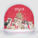 ¡Qué divertido! Una manada de perros deseándoles a todos una Feliz Navidad. Personalice con su nombre o elimine el nombre por completo. Una nariz roja de fondo rojo y un Sombrero Santa añaden al ambiente festivo.