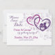 Este par de la silueta dentro de dos corazones ligados hace una invitación preciosa del compromiso o ahorra la invitación de la fecha. La tarjeta del blanco ofrece follaje y helechos delicados como fondo.