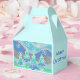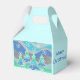 Un moderno y estilizado paisaje invernal con pinos espumosos y copos de nieve. Favor de la caja con un diseño de personalizable verde, azul, gris plateado y blanco para que usted lo personalize con su propio texto, imágenes e ideas. Imagen creada con un dibujo de lápiz de color mejorado digitalmente.