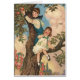 Ilustracion infantil vintage que muestra a un niño y chica trepando un árbol para manzanas.