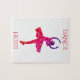 Chica bailarín en rompecabezas rosa con nombre personalizado.