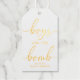 Estos chicos son las etiquetas de regalo de los Relieves metalizados de oro de la Bomba Baby Shower son perfectas para acompañar un favor de la bomba de baño. Las etiquetas presentan un verdadero Relieve metalizado dorado moderno de la caligrafía y un espacio en el reverso para la lista de ingredientes o un mensaje especial. Los encabezados del guión "bomba masculina" son imágenes que no se pueden editar. El resto del texto es totalmente editable. Para una personalización más avanzada de este diseño, simplemente seleccione el botón "Personalizar" de arriba.