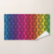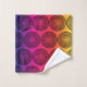 Patrón gráfico con círculos de mosaicos concéntricos sobre un fondo de arco iris degradado.