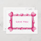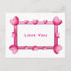 Las palabras "Love You" están en un marco rosado rodeado de brillantes corazones rosados en un fondo blanco.