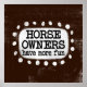 "Los dueños de caballos tienen más diversión" es un lindo diseño de texto en marrón con texto negro, junto con una forma de acento blanco y puntos caprichosos de textura blanca que lo rodean.