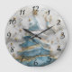 Una hermosa pieza decorativa decorada con un árbol de Navidad en brillantes tonos azules y dorados, adornada con una estrella en la parte superior. El diseño es muy complejo y muestra a un reno saltando por un telón de fondo nevado, exuberante alegría vacacional y elegancia.