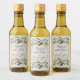 Esta etiqueta favorece la boda de aceite de oliva tiene un marco geométrico irregular de oro con ramas de aceitunas con hojas verdes y aceitunas negras arriba y abajo sobre dos hexágonos de oro que superponen. El fondo es de mármol blanco. El mensaje "Infundido con amor" y los nombres están escritos en un elegante guión caligráfico; el resto está escrito en mayúsculas. Hay un (falso) corazón dorado encima de los nombres. La rama de olivo es de un ilustracion botánico - "Olive Tree" - de la publicación "The North American Sylva, Vol. II - 1841-1849", ahora de dominio público.
