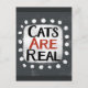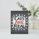 "Los gatos son reales" es un lindo diseño de texto en gris con texto en negro y rojo, junto con una forma de acento blanco y puntos caprichosos de textura blanca que lo rodean.