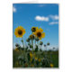 Hermosos girasoles en un día de verano cristalino, drásticamente contrastados con un cielo azul profundo.
