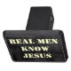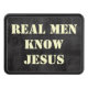 ¡Nuestros hombres reales saben que Jesús que la cubierta grande del remolque de enganche es una gran idea para un regalo para su individuo preferido y perfeccionan para el día de padre! Fondo negro del modelo de la pizarra de las características del diseño de la diversión unido con el texto en blanco. Cualquier mucho hombre lo amará. Disponible en dos tamaños (grande y pequeño). ¡Descuentos por volumen disponibles!