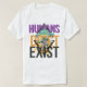 ¿Crees en los extraterrestres? Una cosa es segura. No creen que sean humanos. Cita graciosa los humanos no existen en la tipografía colorida en morado negro y naranja presentando un ilustracion de arte moderno y un gráfico de un astronauta extraterrestre verde en el espacio exterior con una luz de nave espacial Ufo y triángulos geométricos en tinta negra. el regalo perfecto para todos los aficionados a las "geeks" y a las películas de ciencia ficción