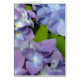 Tres hydrangeas exhiben muchas sombras del azul en esta imagen bonita, floral, convertida a digital como "pintura al óleo". Con hacer juego sellos.