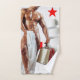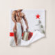 Navidades de SlipperyJoe comprando un árbol de espirales de papel blanco coronado por una vibrante estrella roja que golpea el tema de las vacaciones atrevida banda de escarlata corriendo horizontalmente sexy hombre muscular de pecho parcialmente vestido hoja de cama artística sin camisa regalo de tipo bolsos de compras estacionales regalos de orgullo gay alegrías LGBTQIA