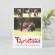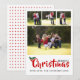 Collage de fotos de las festividades de los mejores Navidades con 4 fotos con tarjeta. El texto "Los Navidades más bonitos" en una tipografía de estilo con letras a mano en rojo y negro, bayas y cuatro fotos adornan esta tarjeta plana contemporánea. Un patrón geométrico rojo y blanco cubre la parte posterior. Fotografía © Storytree Studios, Stanford, CA