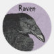 Este ilustracion vintage es un majestuoso cuervo negro mirando por encima de su hombro. El fondo es un violeta texturado. El texto dice Raven. Vea mi tienda Arte de MAR para encontrar productos que coincidan con este diseño.