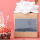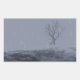Un paisaje frío y ventoso en 3D en invierno, creado en Vue. Encima de una colina blanca con hielo y nieve, contra un cielo gris tormentoso con lluvia o manto cayendo sostenidamente, un solitario y desnudo árbol de arce se para con un banco de madera debajo.