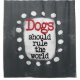 Un diseño tipográfico lindo que dice "Los perros deberían gobernar el mundo". Es texto en negro y rojo sobre un rectángulo blanco con puntos divertidos y juguetones alrededor de él se sienta sobre un fondo gris sólido y texturado.