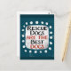 "Los perros de rescate son los mejores perros" es un lindo diseño de texto en verde azulado con texto en negro y rojo, junto con una forma de acento blanco y puntos caprichosos de textura blanca que lo rodean.