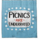 "Los picnics son subvalorados" es un divertido y chunco diseño de texto con una forma de acento blanco rodeado de adorables puntos de polka blancos.