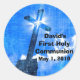 Diseño brillante en azul con "La primera comunión sagrada de David" y texto de fecha y arte fotográfico original de una cruz de iglesia con un efecto estelar. Cambiar fácilmente el texto para personalizar. Recuerda este día sagrado especial con pegatinas personalizados para tu familia y amigos. Ver otros pegatinas de la Primera Comunión en la tienda MVDesigns.